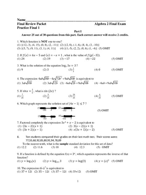 Read algebra 2 final exam answers powered by cognero Doc